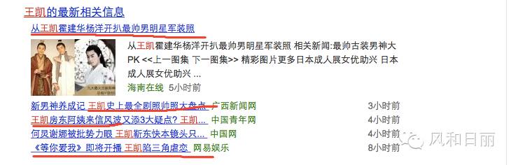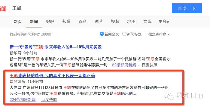 同时百度新闻,王凯的手表软文+正面回应都排在最前面。