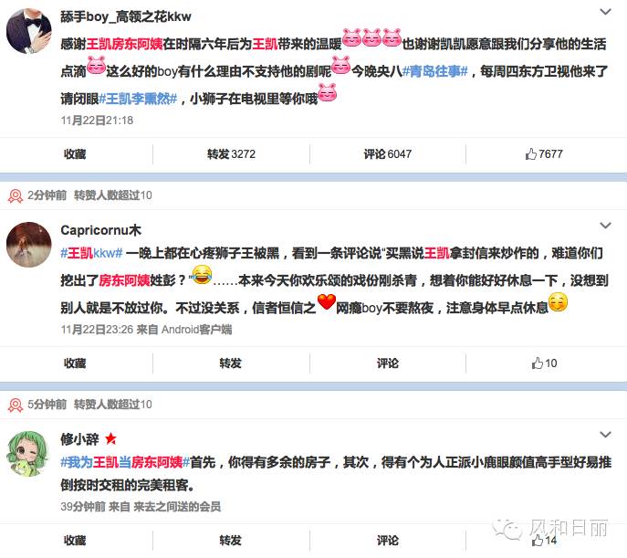 就像我们看到很明星的什么小时候的邻居爆料,小学同学爆料,什么明星父母的好朋友爆料,班主任爆料,其实「王凯房东阿姨」事件就是这么个意思,见证了一个演员的过去。