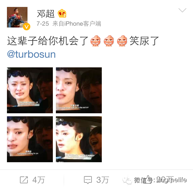 邓超如今做影视已经更加游刃有余,大概平时就是在微博上练手,吸收天地之精华,网络之妖灵~
