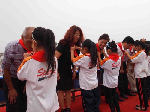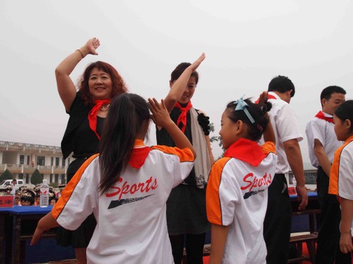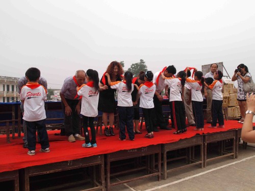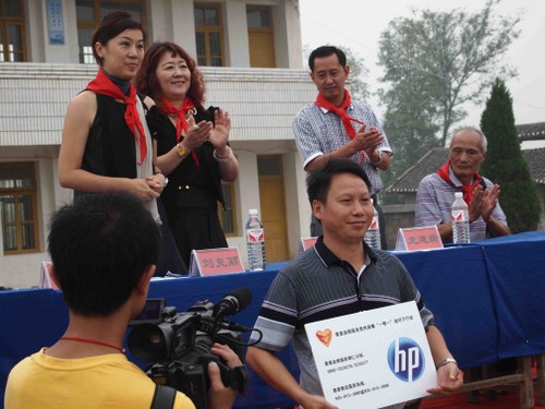 惠普中国市场总监刘磊向小学赠送乒乓球和球拍