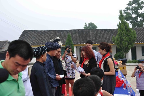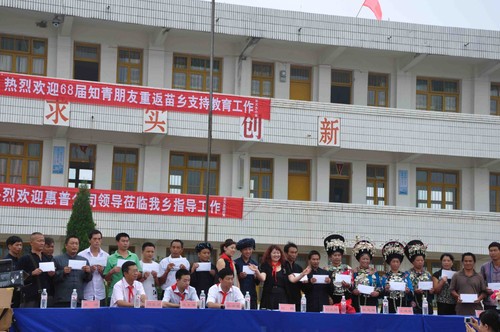 我和松桃县副书记、正大乡书记、乡长、惠普中国市场总监、知青代表等主席台就坐