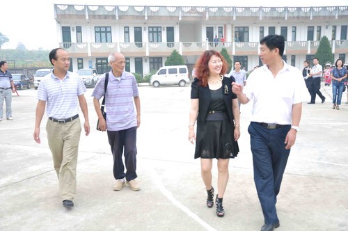 我在和迎接我们的松桃县委副书记交流