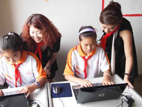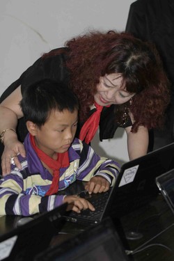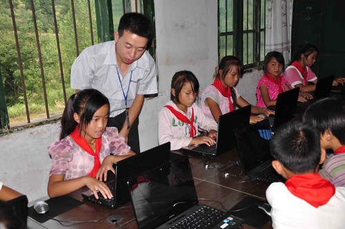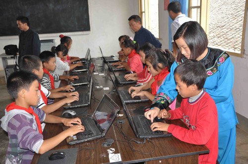 桐木寨小学生们正在认真的学习电脑