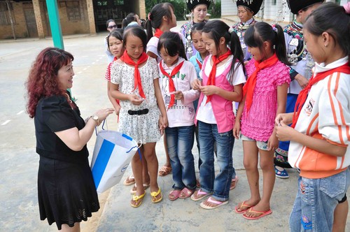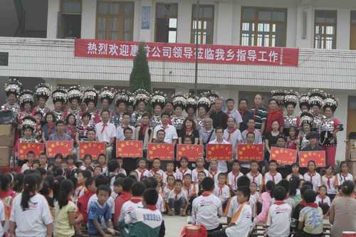 我们在正大乡完小收到爱心牌