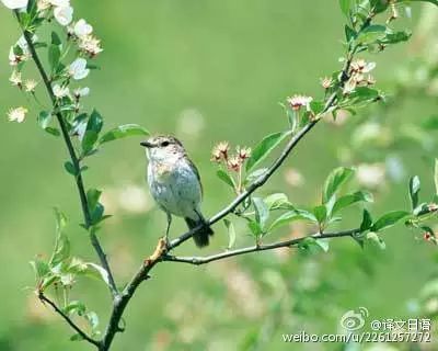 我们就会联想到盎然的春意,一只飞来的雀鸟落在了柔软的棠棣枝条上,枝条难以承受突如其来的重量晃动弯曲了,这猝不及防的晃动又让雀鸟大吃一惊,自然与动物的和谐,充满生机的春天,让人为之感动。