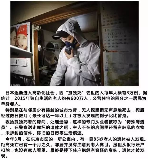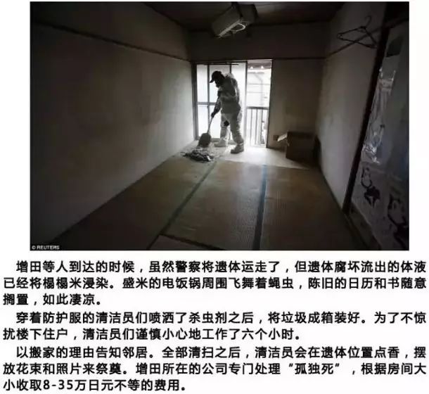 日趋脆弱的家庭关联现在,在“无缘死”的现象催生了一个新行业——“特殊清扫业”。