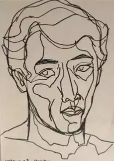 我喜欢画画,除了念书之外。我的画到现在来看,我还不会脸红。这是我的自画像,现在看起来也还不错,草草几笔也还蛮有自信的。