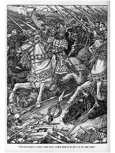 “在那巴顿山上,我亲眼目睹国王一马当先冲向敌阵,一众圆桌骑士紧随其后”(《国王叙事诗》,阿尔弗雷德·丁尼生)