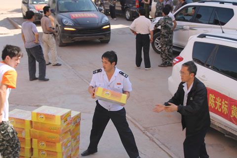 面对突如其来的灾情,漳县国税局在努力开展自救的同时,积极投身于社会救助活动中,党员志愿者突击队的身影昼夜出现在抗震救灾现场。“中国首善”—陈光标先生赶赴灾区之际,受漳县县委、县政府委托,漳县国税局全程协助开展救灾行动。7月22日深夜,当陈光标先生一行风尘仆仆赶到漳县时,漳县国税局党组书记、局长宋世存同志带领部分职工早已等候,策划救灾方案、联系挖掘机和推土机等大型设备、陪同前往灾区……夜已深,但漳县国税人依旧无眠,忙碌的身影在抗震救灾一线处处闪现……当各地救灾物资源源不断的运到漳县时,漳县国税局党员志愿者突击队的身影又出现在搬运救灾物资的现场。当“漳县国税局党员志愿者突击队”红旗高高飘扬,国税职工挥汗救灾解决了政府人力不足的困难时,周围投来了党政领导和各界群众赞许的目光。
