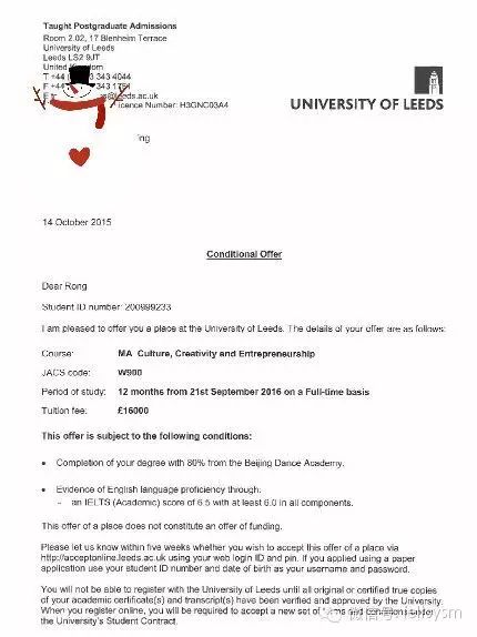 2015年10月14日小烤鸭收到leeds的offer