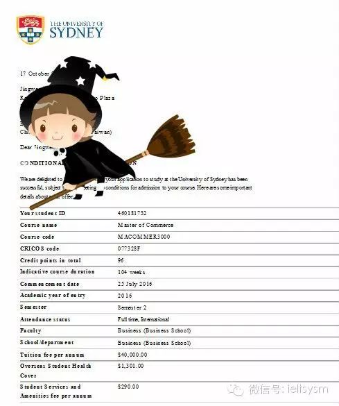 2015年10月17日收到SYDNEY的offer