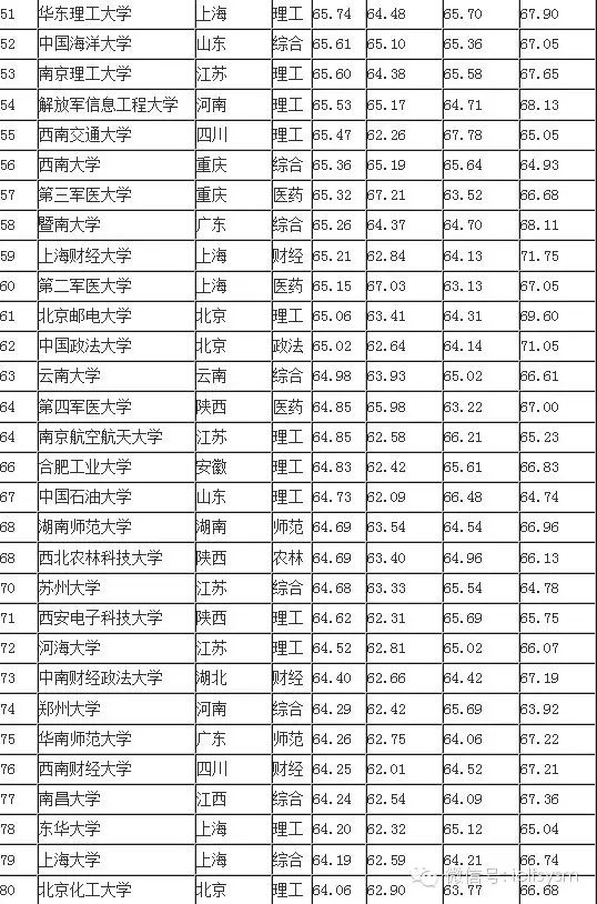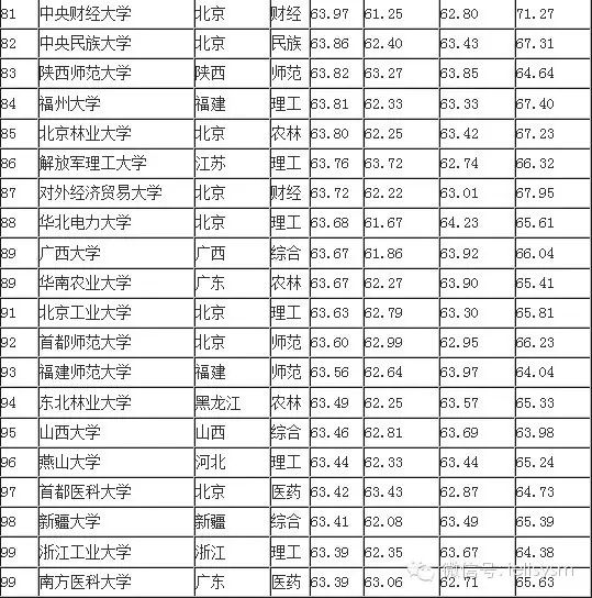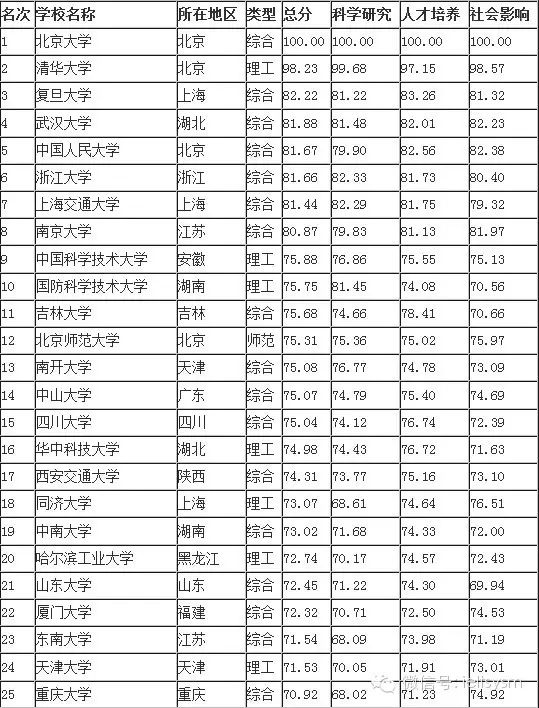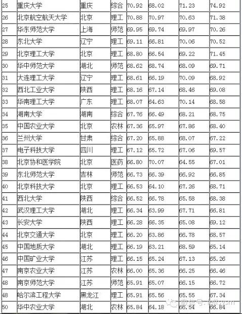 2015中国大学排行榜100强