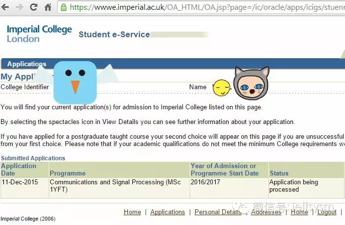 噢对了,提醒帝国理工申请的小伙伴们,帝国理工的自查系统独立于申请系统,所以递交后不要默默等待哦,激活你们的自查系统,天天上去扒动态吧~~~正确的打开方式是这样滴