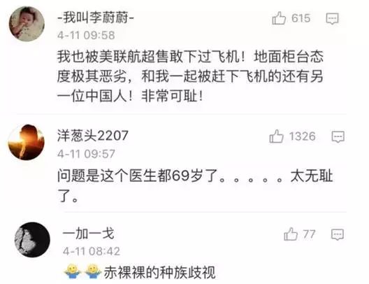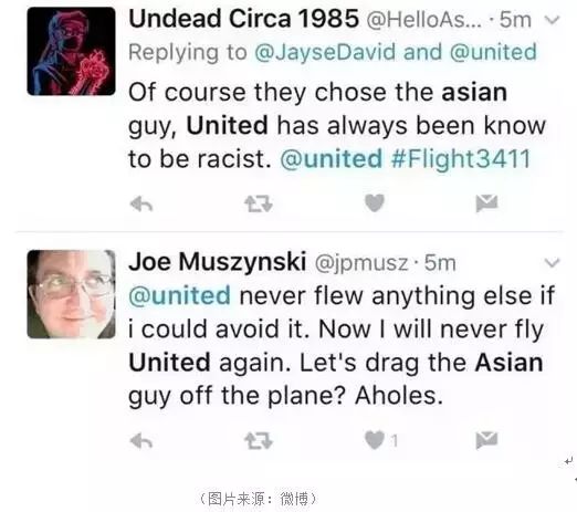 “他们是特意“抽中”亚洲人的,美联航种族歧视是出名的。”