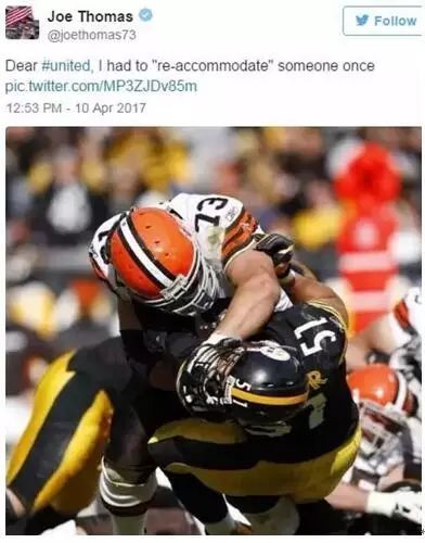 一位橄榄球明星还用橄榄球赛冲撞的画面来吐槽↓