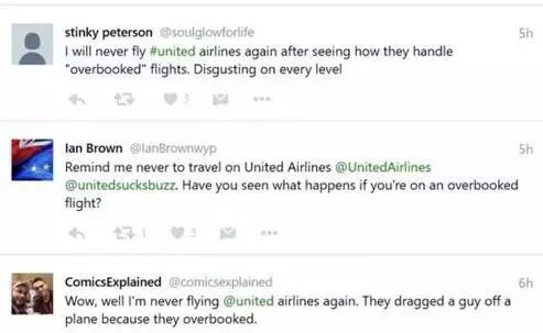 美联航的回应使得公众更加不满,在社交媒体上,大量网友表达了以后拒绝乘坐美联航的态度。