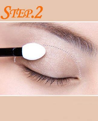 以小海绵刷沾取清透色眼影后,顺着眼窝刷上并让颜色更加融合。