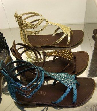 无论哪个女生,家中至少有一双平底凉鞋,春夏穿着方便舒适,而且牛仔裤、短裤、短裙无一不配。今年尤其是罗马平底凉鞋,就连kate moss也没有错过,简单的黑色西服短裤搭配,就让整体很有型,不经间就会流露出点摇滚味道。