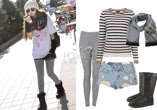 无论针织衫还是雪地靴都是MM们最爱的单品之一。选一件条纹针织衫,搭配牛仔短裤,让你娇小惹人爱。想让自己更有型选一条灰色打底裤,色度柔和更走俏。此时翻毛黑色雪地靴,呼应黑色条纹与围巾。平衡美感悠然而生。