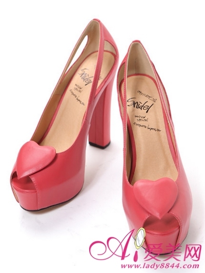 桃心的装饰十分可爱,西瓜红色的高跟鞋让人心动不已。