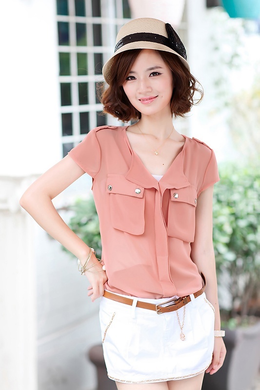 最喜欢本款搭配,微微露出一点锁骨就很美,女孩们似乎都对雪纺有种莫明的爱恋,它清新柔美,散发让人难以抗拒的迷人魅力。一身清新雪纺的装扮带给人眼前一亮的动人效果,提升气质的同时,让你周身散发着灵动的浪漫,版型宽松,随身随性,不限制身材,无论胖瘦都可穿着。胸前的口袋真的很大气,随和,浪漫雪纺衣,充满了飘忽不定的精灵气质,让你成为夏日时尚风向标。