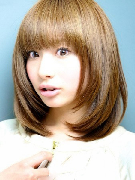 齐刘海加上简单的内烫,最适合想要简单却又想减龄的女生们,这款绝对能够得到完美的实现