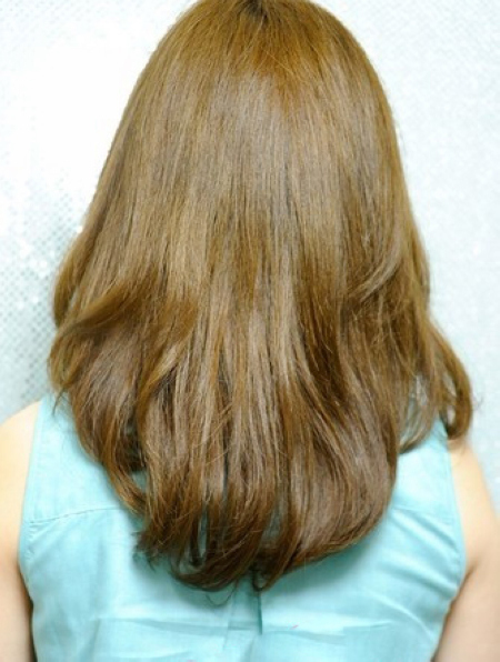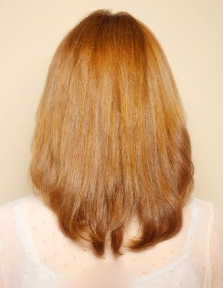 简单的将发尾内烫后,金棕色的染发造型起到突出造型和制造出时尚美感的效果