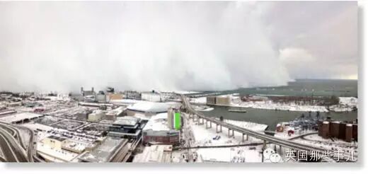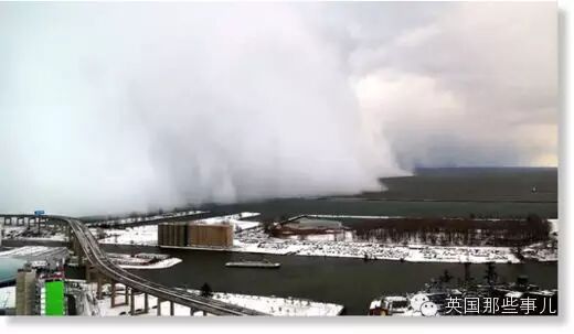 冷空气经过五大湖区域的时候,直接把湖面上空湿润的水气直接冻成了雪……