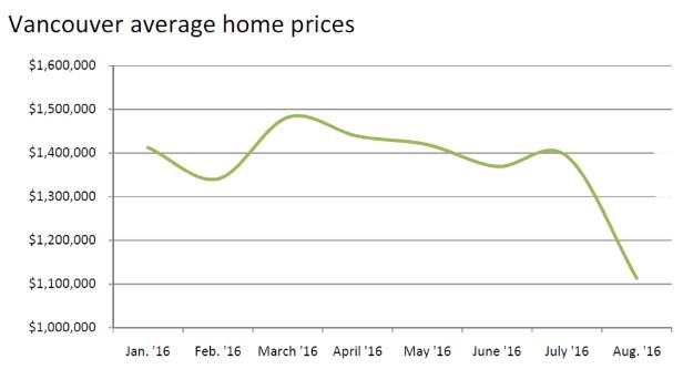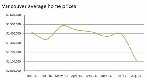 温哥华市房屋均价是110万加元,在一个月之内降了20.7%。