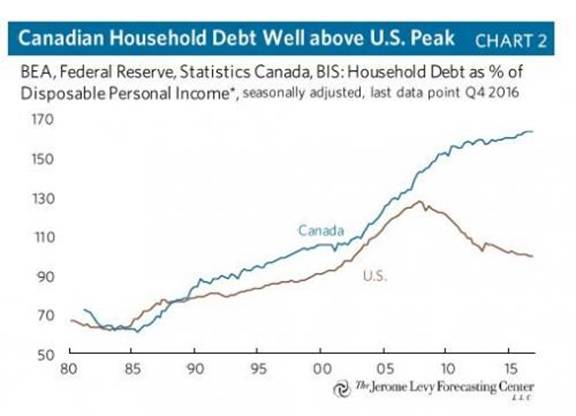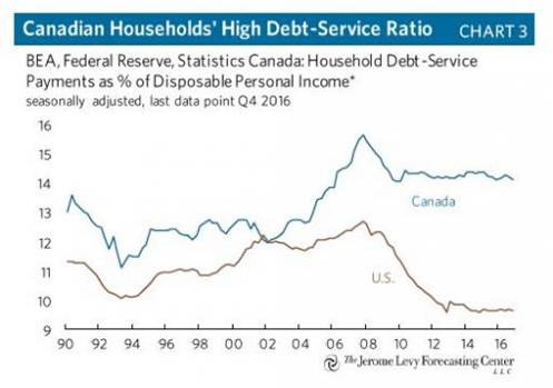 2、两年后的今天,Slok当初指出的这些问题非但没有缓解,反而更加严峻。加拿大房屋贷款量继续上扬,同美国的差距再度扩大,甚至超过了美国次贷危机爆发前的峰值。此外,偿债比率高居不下。