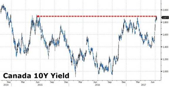 正如太平洋投资管理公司副总裁HarleyBassman所说:“没有人能够准确做出预测,但昨日,加拿大央行提高利率可能会是一个导火索。”
