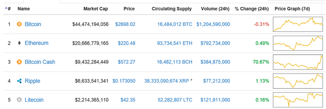 而分叉的原因还在于对数字资产的需求呈爆发式的增长。作为数字资产的领头羊,比特币从年初的7000元单价飙升到最新的19000元,今年的涨幅达到惊人的170%。其整个数字资产市场价值已突破1000亿美元的历史关口!如此火爆的涨势,吸引着无数想分一杯羹的投资者。越来越多的投资需求,反过来助长了比特币价格的增长,因而又带动的了需求,形成一个相互加强的循环。比特币分叉无疑是满足投资数字资产需求最直接的方式。分叉出来新的比特币现金,在短短两天内价格从2400元涨到目前的3800元,涨幅接近60%,足以看出需求有多强劲。