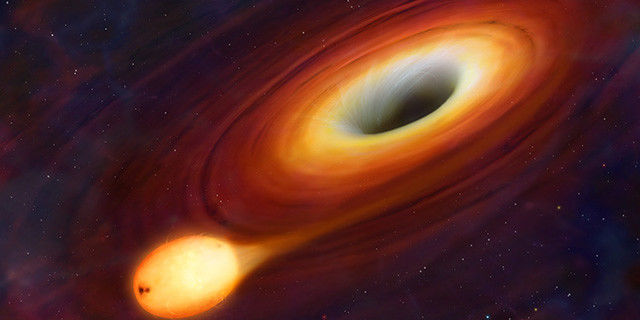 http://mmbiz.qpic.cn/mmbiz_jpg/icZklJrRfHgCG5CGlQanQtUgrH5r9kIXRkxg9hUibDByicFLbYFh3NicF2E632MicibL303L3XicwQcojcj0BHJ4NrrWA/0?wx_fmt=jpeg 按照设定,“卡冈图雅”周边的吸积盘,是大黑洞撕掉了一颗红巨星之后捕获的。不过这张示意图中的黑洞,就远没有电影《星际穿越》里那么真实了。图片来源:huffingtonpost.com
