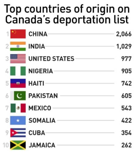 近日,加拿大移民局公布了今年的遣返黑名单,上面显示截止到17年11月,一共有1.5万外国人被加拿大驱逐出境。