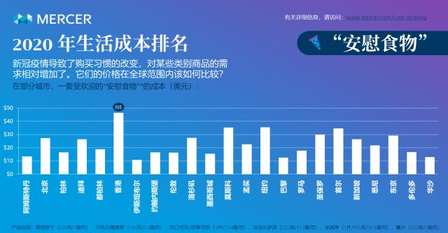 2020年生活成本调查显示,疫情也影响了我们的消费购买习惯。某些类别的商品,如流行的“安慰食品“、清洁用品和家庭娱乐的需求相对增加。美世进行了特别分析,重点分析了这些商品在选定地点的成本。