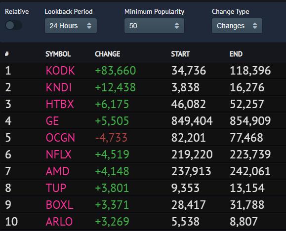 据追踪美股热门交易软件罗宾侠(Robinhood)的RobinTrack,柯达是周二所有在美上市公司中最受欢迎的股票。据商业内幕报道,在美国政府宣布授予柯达近8亿美元的贷款转型制药前,罗宾侠上柯达的股东数仅为9300人,而截至美东时间周三中午,这个数字已经超过7.2万。