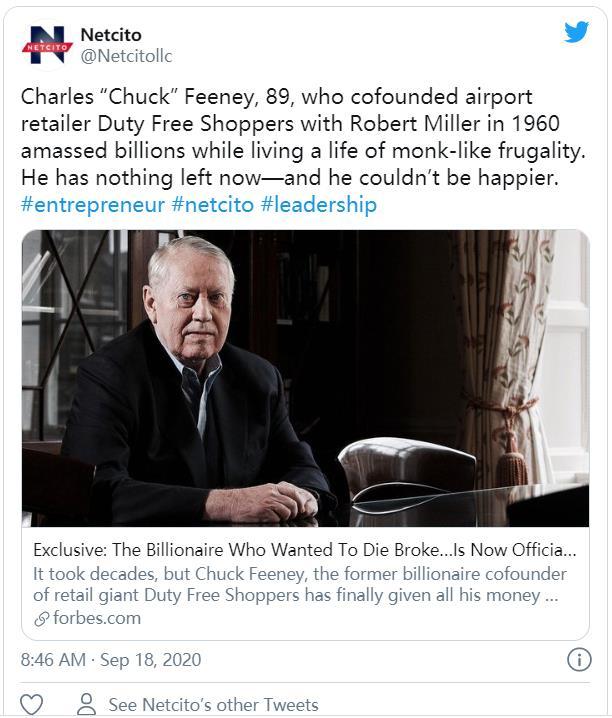 他就是矛盾的查尔斯.查克.菲尼(Charles'Chuck'Feeney)——全球超级富豪中,实现裸捐第一人!