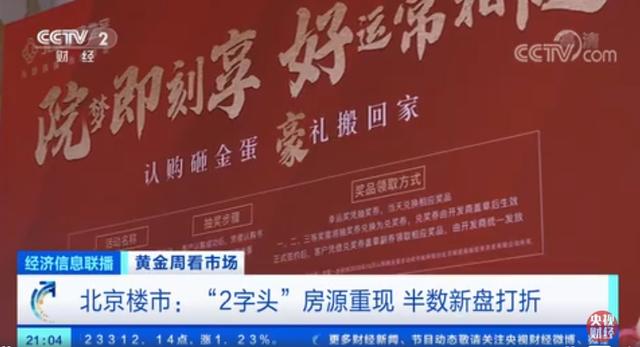 10月5日,北京半数楼盘打折促销,出现2字头房源的新闻,就上了央视财经。