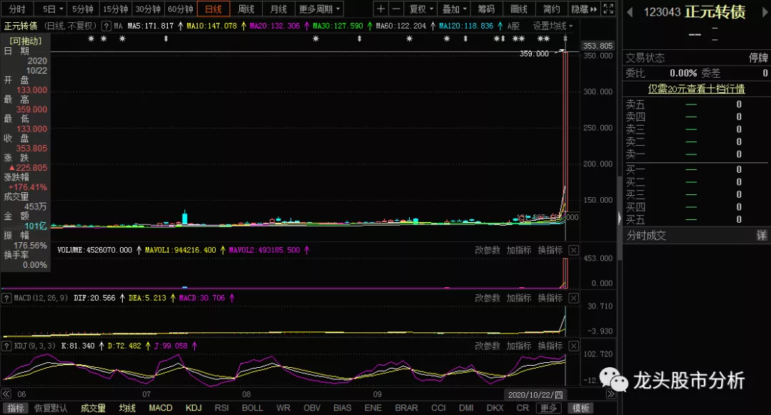最后,逼得那些喜欢刺激和追求痛并快乐着的快感的投机资金跑去了可以T+0交易的可转债板块,导致可转债市场本周上演了历史罕见,甚至在财经有料哥看来是前所未有的疯狂炒作,正元转债在正股正元智慧股价没有疯狂大涨的情况下,日内暴涨176%。