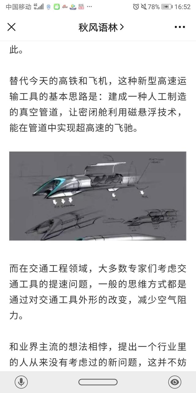 替代今天的高铁和飞机,这种新型高速运输工具的基本思路是:建成一种人工制造的真空管道,让密闭舱利用磁悬浮技术,能在管道中实现超高速的飞驰。