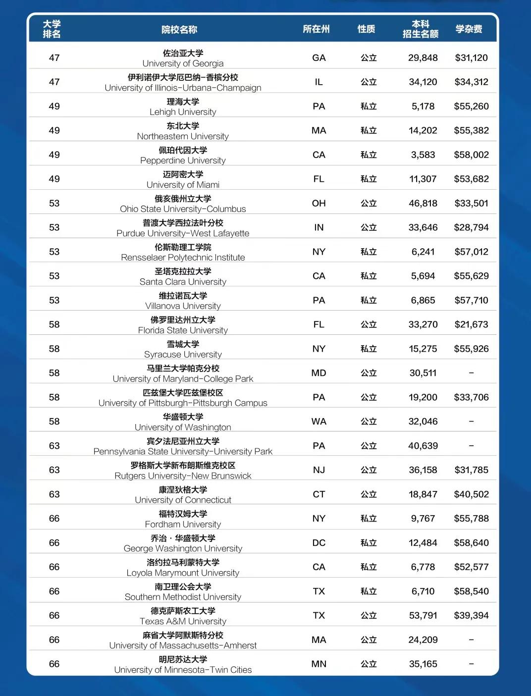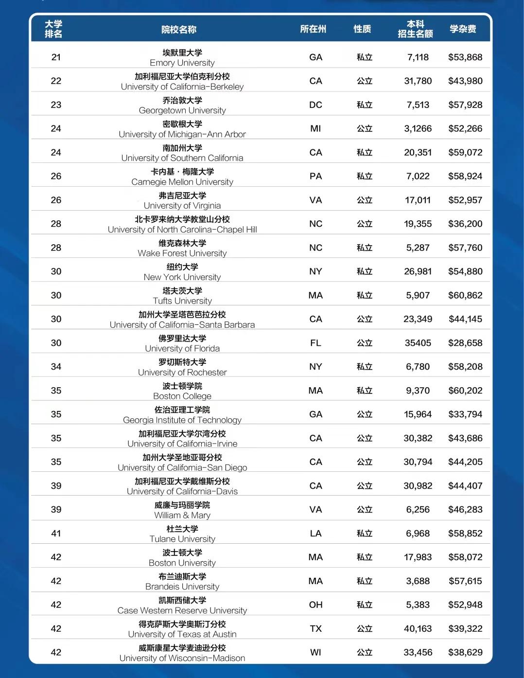 纽约大学(思进注:我的母校之一)排名变化不大,与去年相比下滑一名排到了第30名。