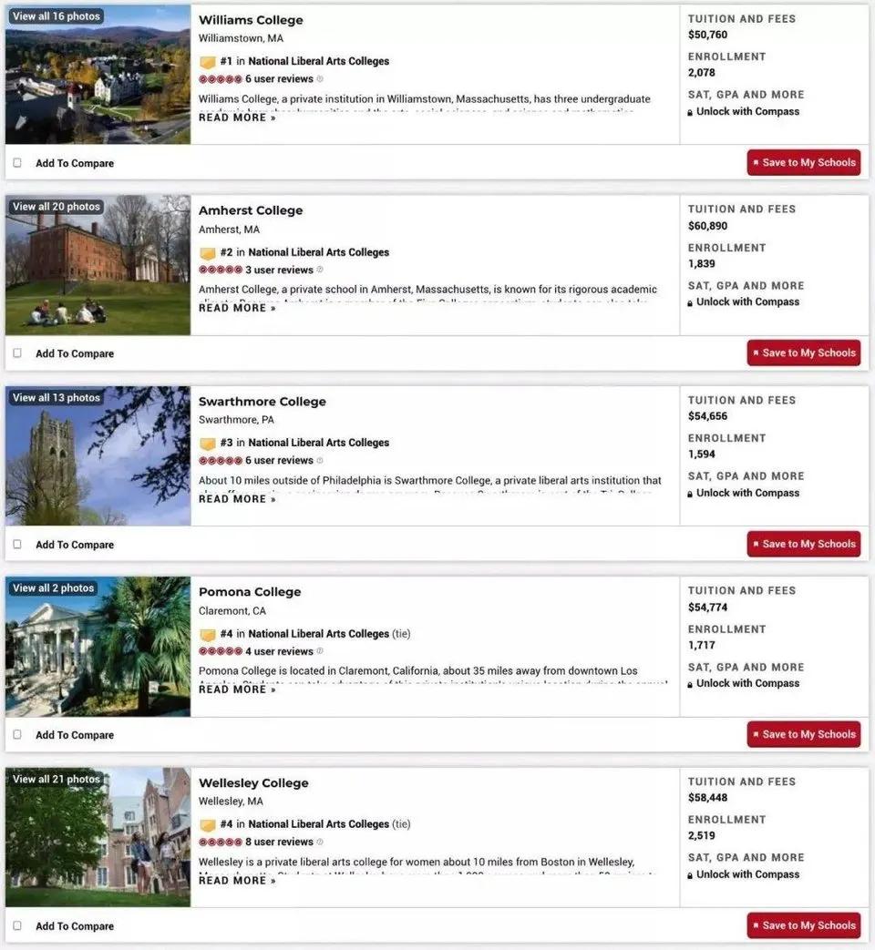 2021美国文理学院排名榜单