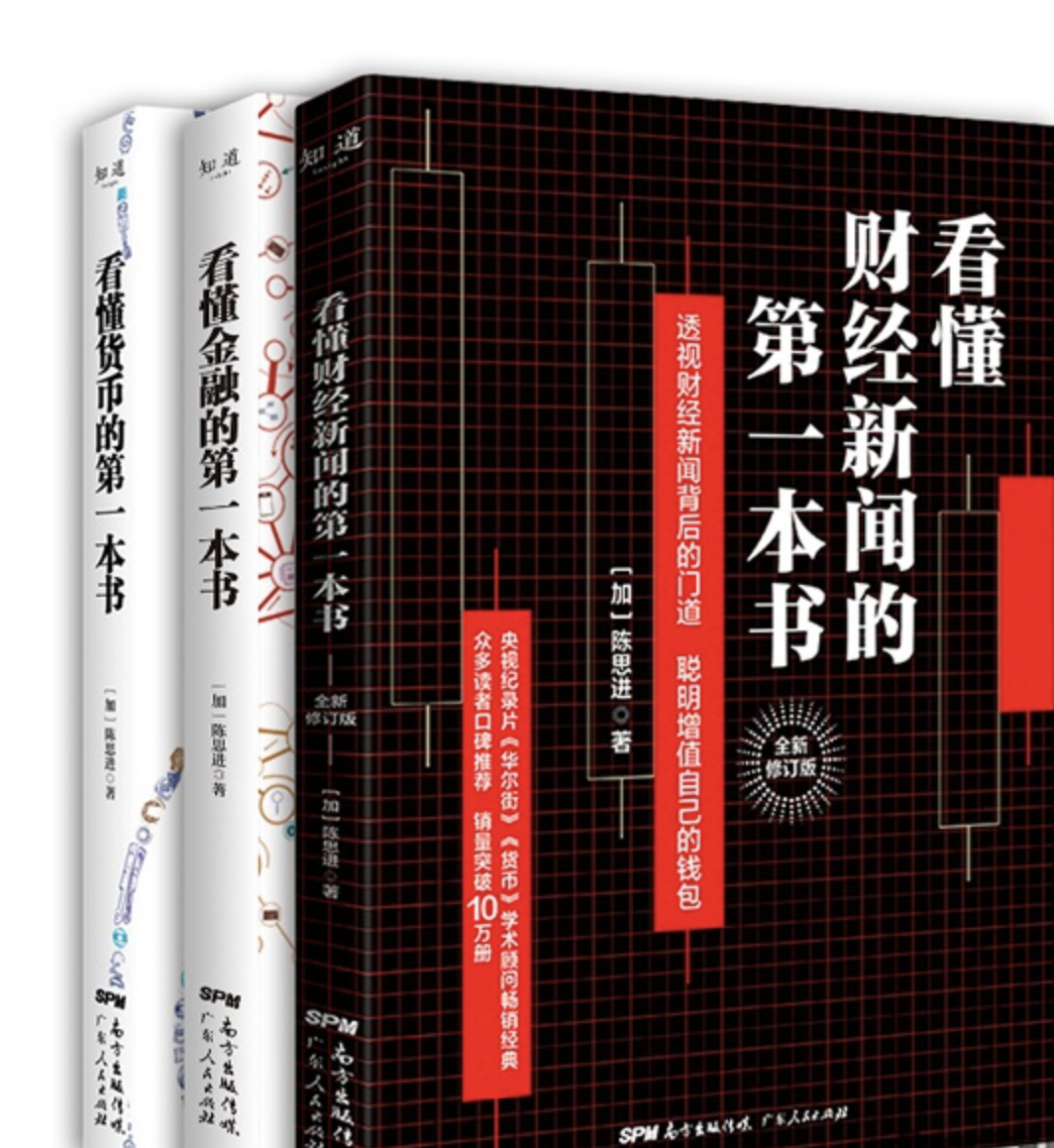 “看懂财经”系列包括《看懂财经新闻的第一本书》(2019年5月出版)、《看懂金融的第一本书》(2020年5月出版)、《看懂货币的第一本书》(2020年8月出版),均由广东人民出版社出版发行。陈思进从财经新闻、金融和货币三个角度,对于金融知识进行了完整有体系的解读。