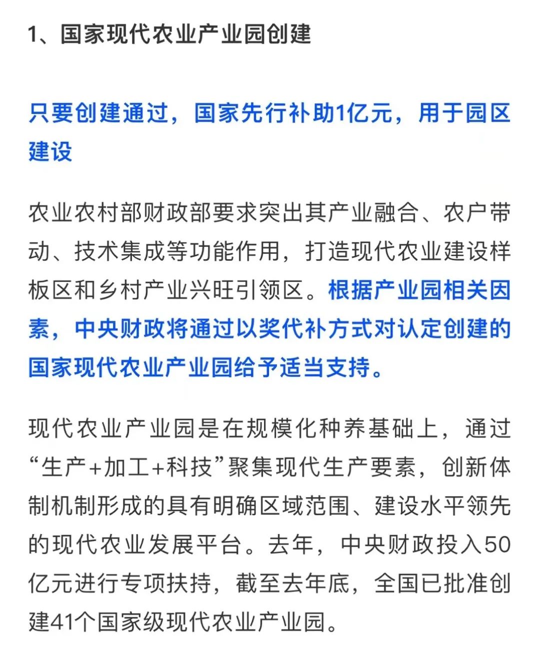 国家先给钱后建设的4类农业产业项目,最多补贴1个亿
