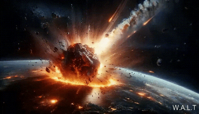 asteroid collides with Earth, massive explosive, slow