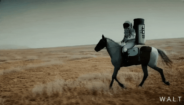 stronaust riding a horse/一名宇航员骑着马