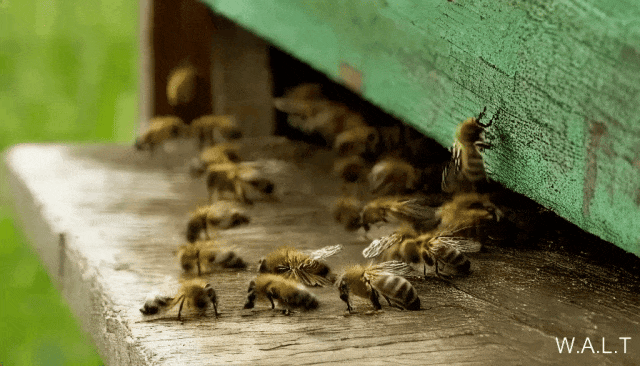 swarm of bees flying around their