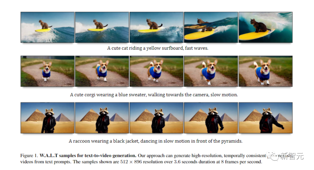 W.A.L.T根据自然语言提示生成的示例视频,分辨率为512*896,持续时间为3.6秒,每秒8帧。W.A.L.T模型能够生成与文本提示一致、时间一致的逼真视频。https://mmbiz.qpic.cn/sz_mmbiz_png/UicQ7HgWiaUb2W9LbCUDOg2UjG8ibjI9VGVPW155Z4YLY6xvRZEYaVuLK7uYxdO2uPLcJFSeCDRP6ofaO8J6nyvyQ/640?wx_fmt=png&from=appmsg&wxfrom=5&wx_lazy=1&wx_co=1