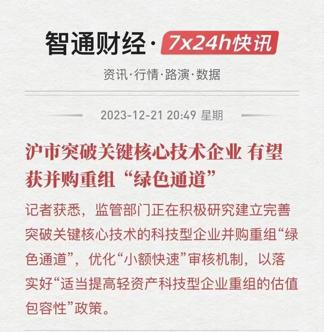 上周五大家的注意力都放在了限制游戏产业的那条新闻上面,而忽略了另一个新闻,那就是上交所召开的一次不大不小的座谈会,据称,正在积极研究建立完善突破关键核心技术的科技型企业并购重组“绿色通道”,优化“小额快速”审核机制。