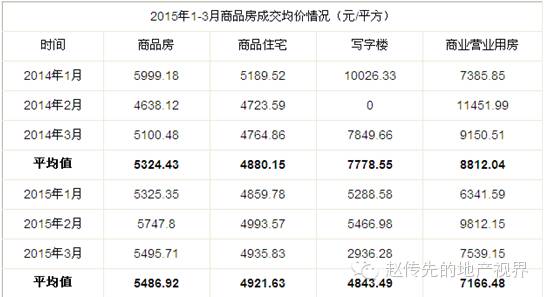 2015年1-3月,市区商品房成交均价5486.92元/平方,去年同期商品房成交均价5324.43元/平方,同比增长3.05%。其中商品住宅成交均价4921.63元/平方,比去年同期4880.15增长41.48元/平方,同比增长0.85%,但与去年下半年以来的住房价格趋势相一致,住宅均价一直在5000元/平方上下波动,整体处于平稳健康发展状态。